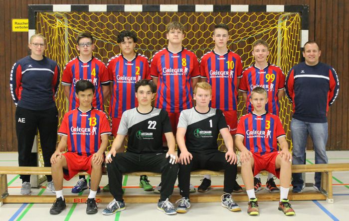 Stehend von links: Volker Künstle (Trainer), Liam Gebhardt, Robin Müller, Lasse Behrens, Jonathan Hepp, David Miscenko,